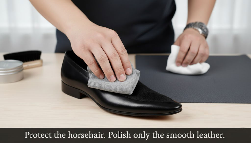 One of the highest-value sections for SEO and user trust—search terms like how to clean horsehair shoes, horsehair loafers care, leather and pony hair shoes cleaning.