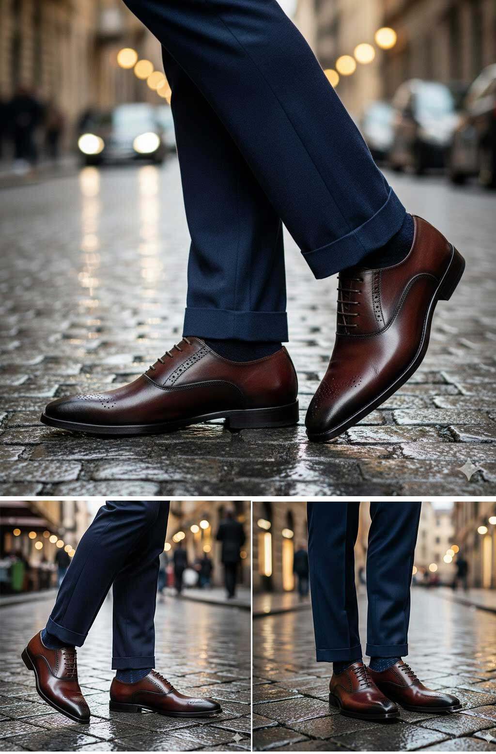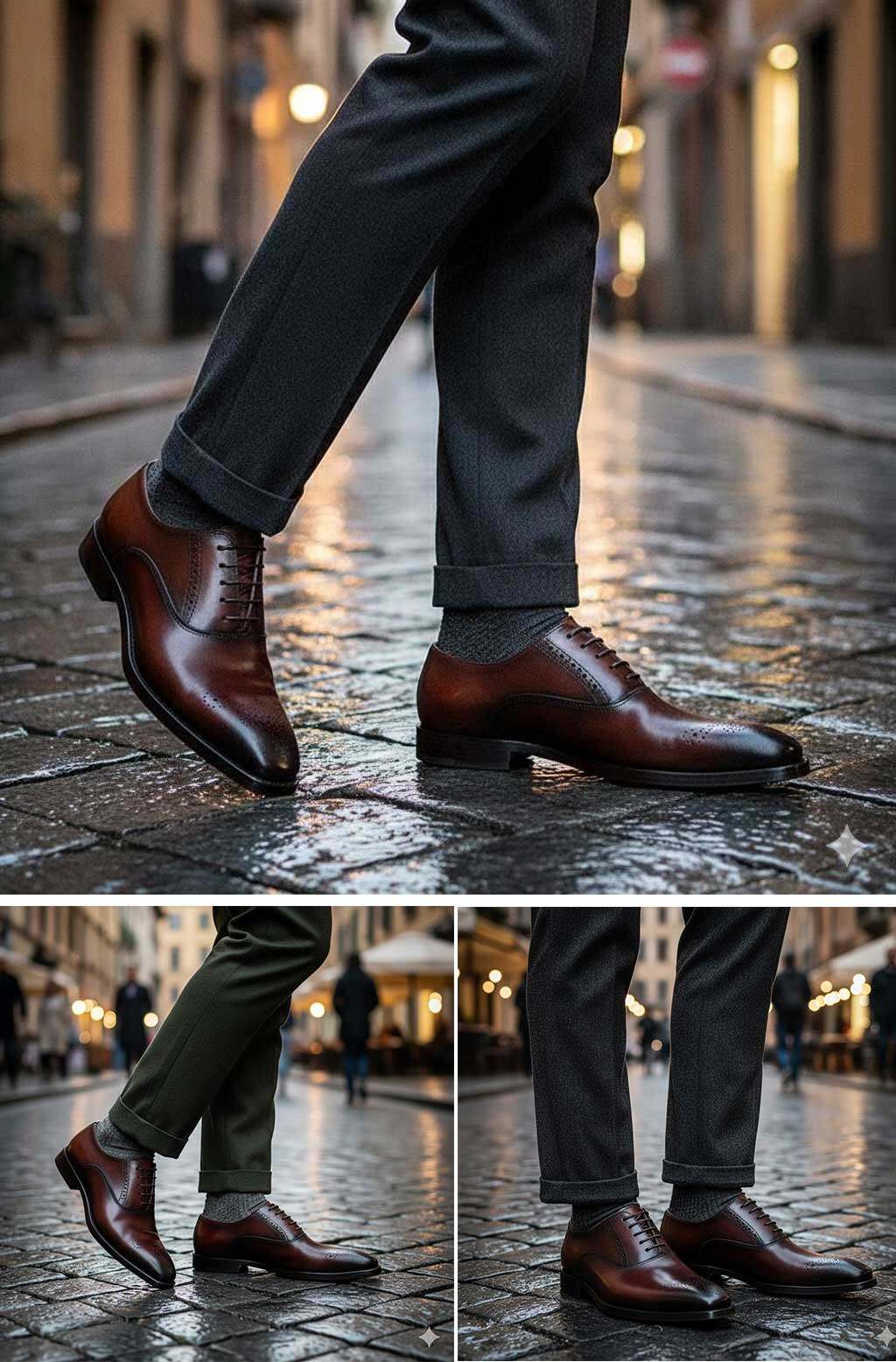 - The Burgundy (or Deep Brown) Oxford Shoe — for modern business versatility and Italian-inspired elegance.