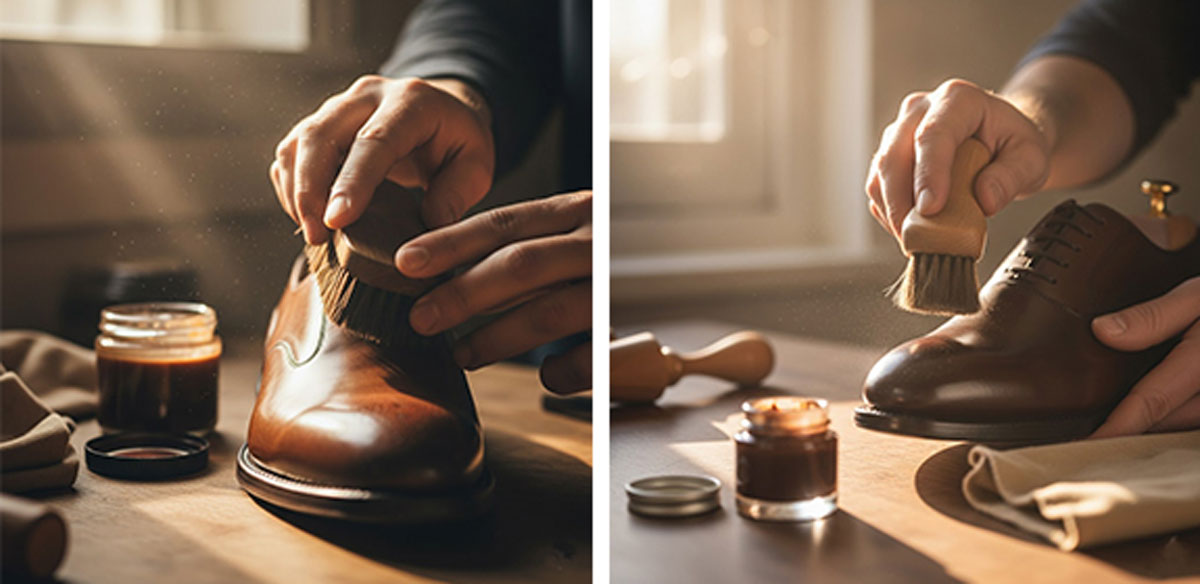 - Suede: Use a waterproof spray and a crepe brush. Never apply wax.